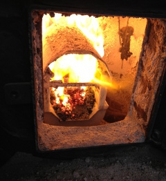 La caldera es de tipo policombustible, en este caso consume cascara de almendra.